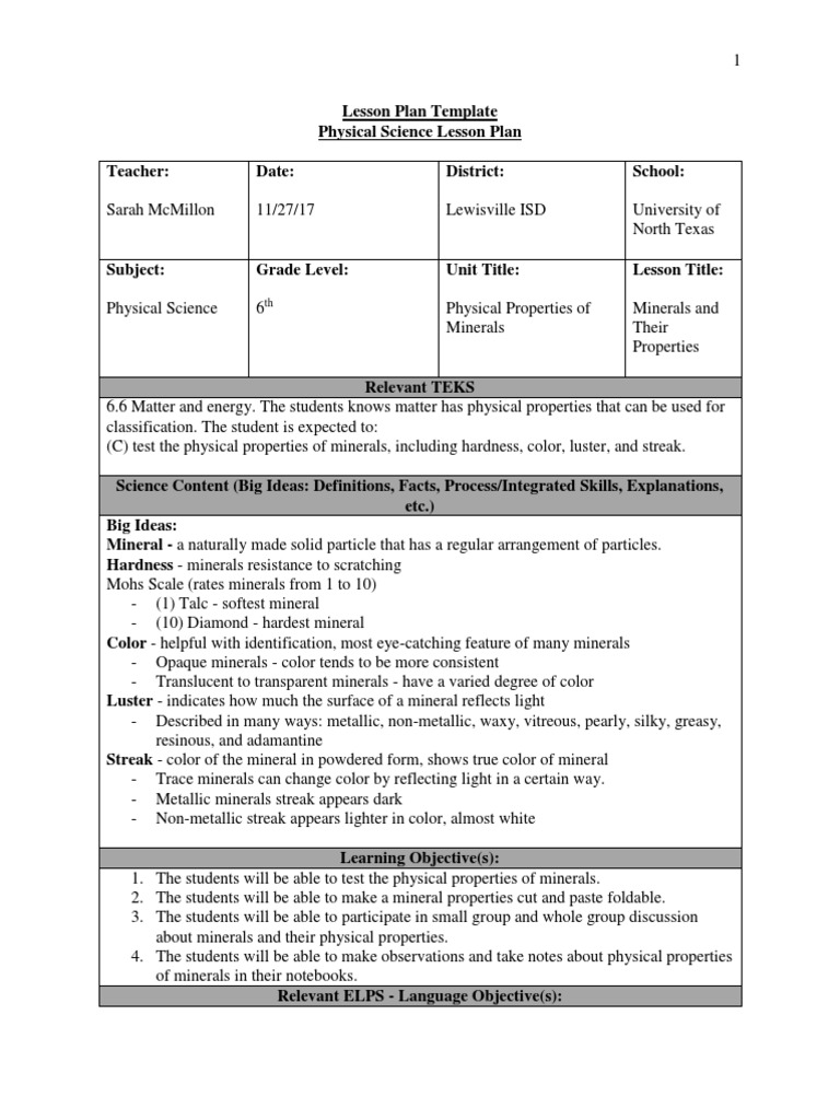 Microteaching Physical Science Lesson Plan Educational Assessment Reading Comprehension