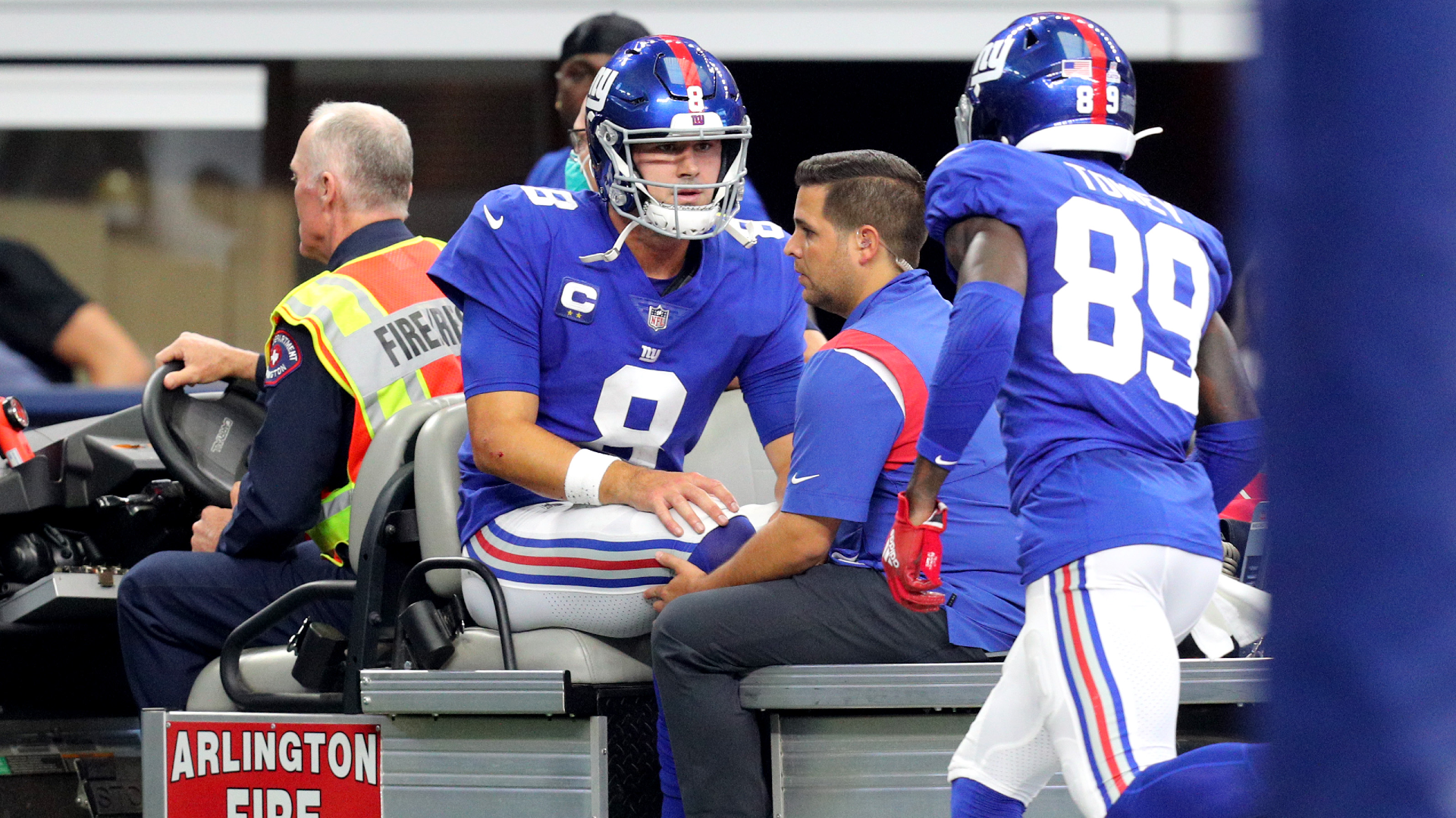 Daniel Jones is back under center for the Giants after missing last week for an injury. Daniel Jones struggled to walk off the field and was eventually carted to the locker room following a nasty helmet-to-helmet hit in the first half of Sundays NY Giants game in Dallas against. The hits just keep on coming for the Giants.